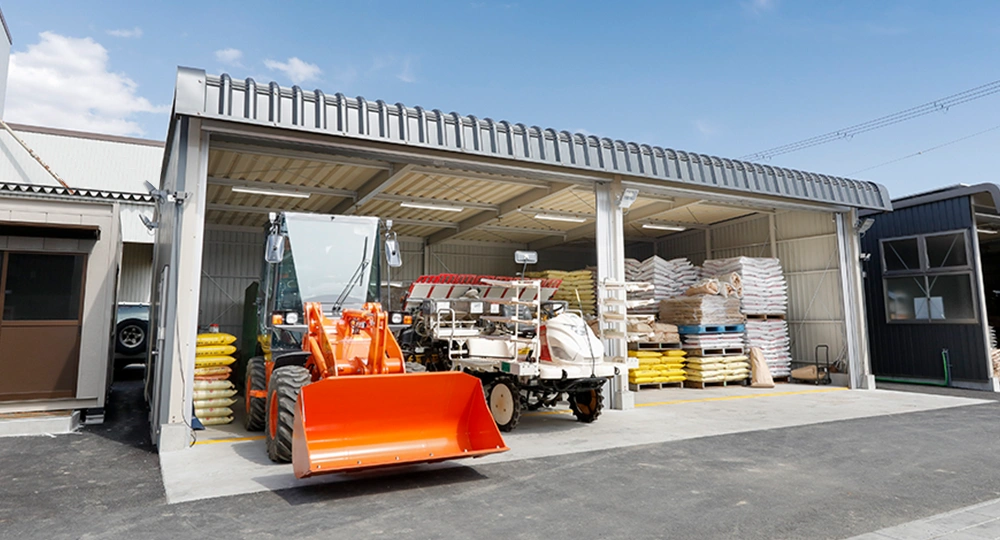 高さ7Mの大型倉庫までございます。80石の乾燥機や大型農工具もラクラク収納できます。